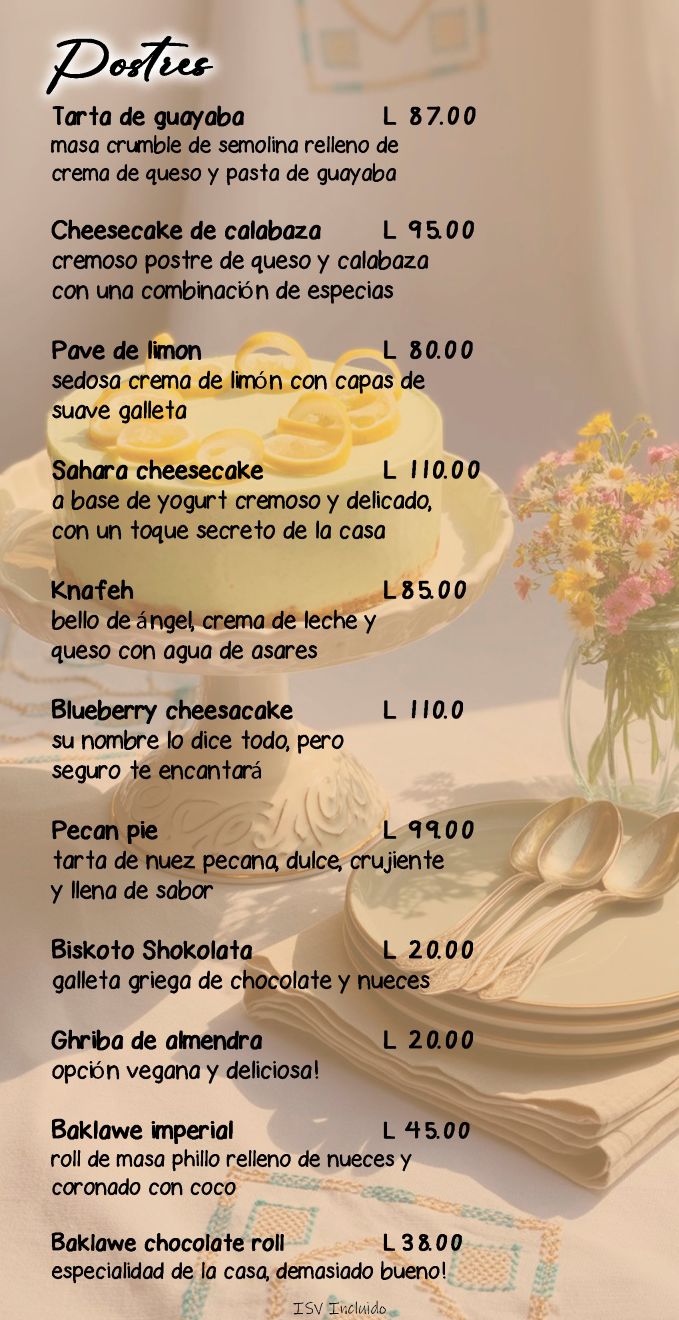 Menu de Café y Postres